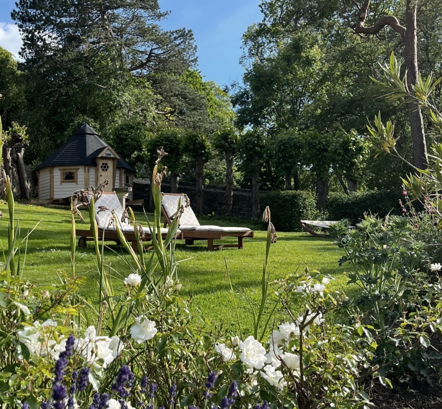entspannen Sie auf unserer sonnenverwöhnten Terrasse mit atemberaubendem Blick auf die Cotswolds und ziehen Sie sich in unsere wunderschön eingerichteten Zimmer für einen erholsamen Aufenthalt zurück.